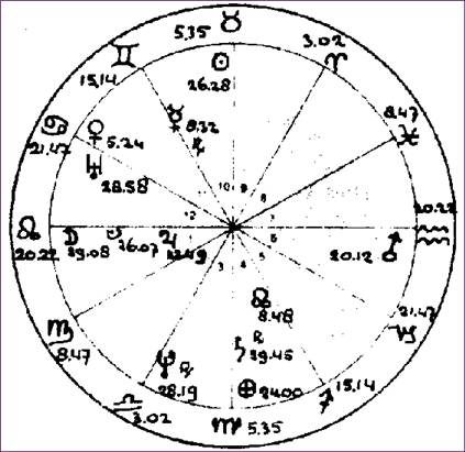 Het belangrijke aspect Ascendant vierkant Mars onderling zou door coördinaat-verbetering op datum kunnen lopen, maar voorlopig nemen we genoegen met de ons bekende gegevens. U weet uit